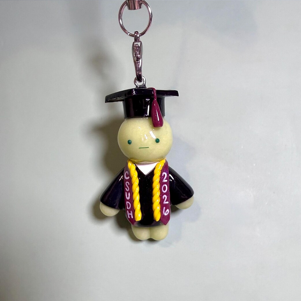 • Custom Graduation Cartoon Figurine Keychain, Clay Glow-in-the-dark Backpack Charm, Grad Keepsake, Graduation/Anniversary Gift for Graduates/Him/Her