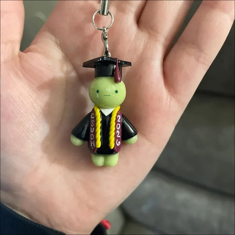 Durable Clay Finish – Crafted from smooth, long-lasting clay, this keychain is built to hold up through daily use. The glow-in-the-dark feature adds a magical touch, letting the graduate shine even after dark.