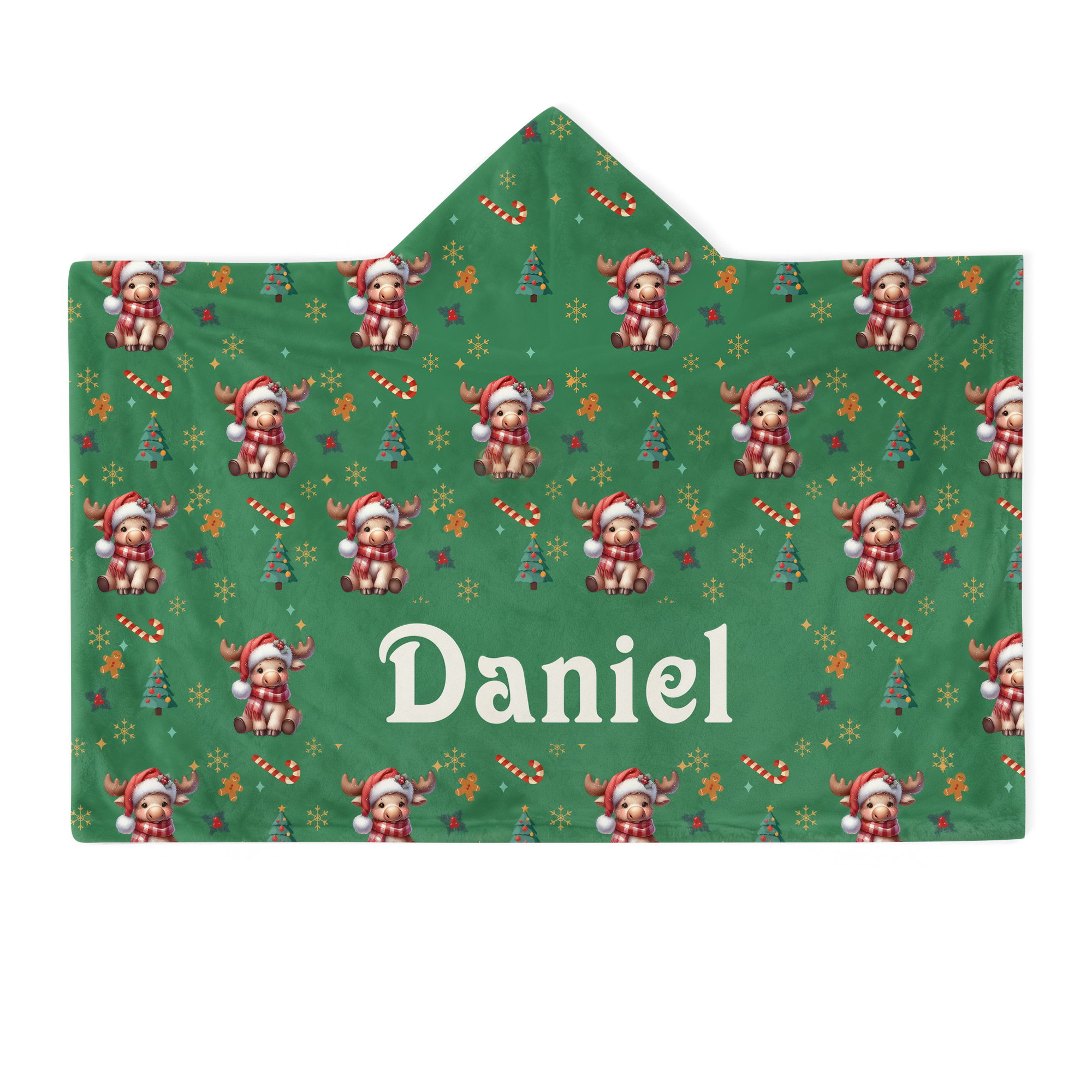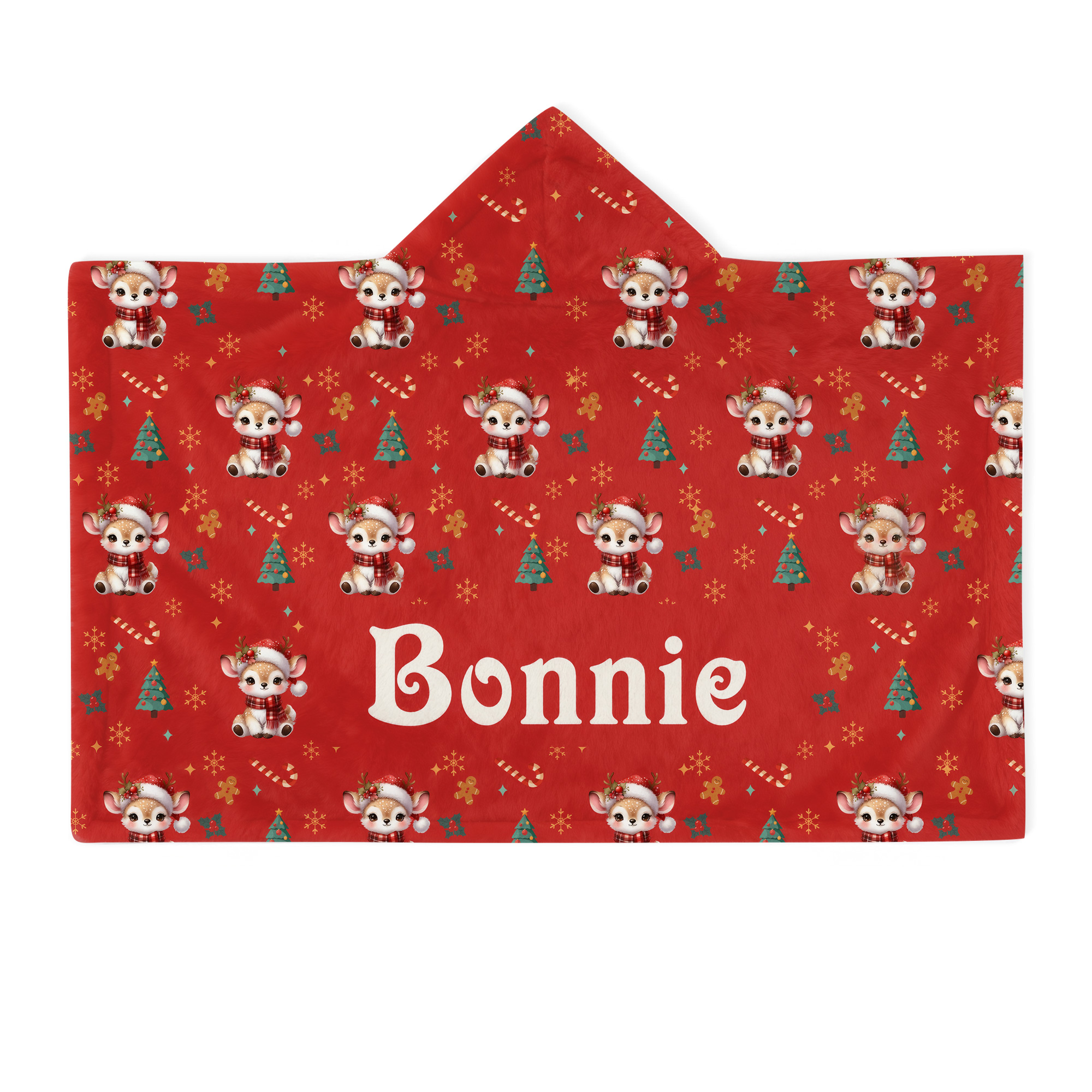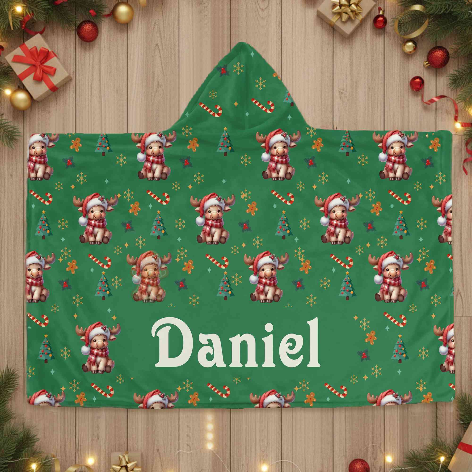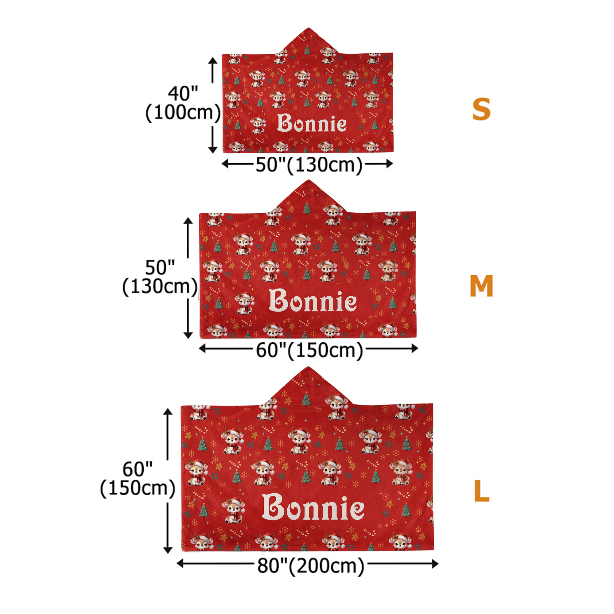• Personalized Christmas Cartoon Animals Soft Hooded Blanket with Name, Multicolor Christmas Hooded Blanket, Christmas Gift for Kids