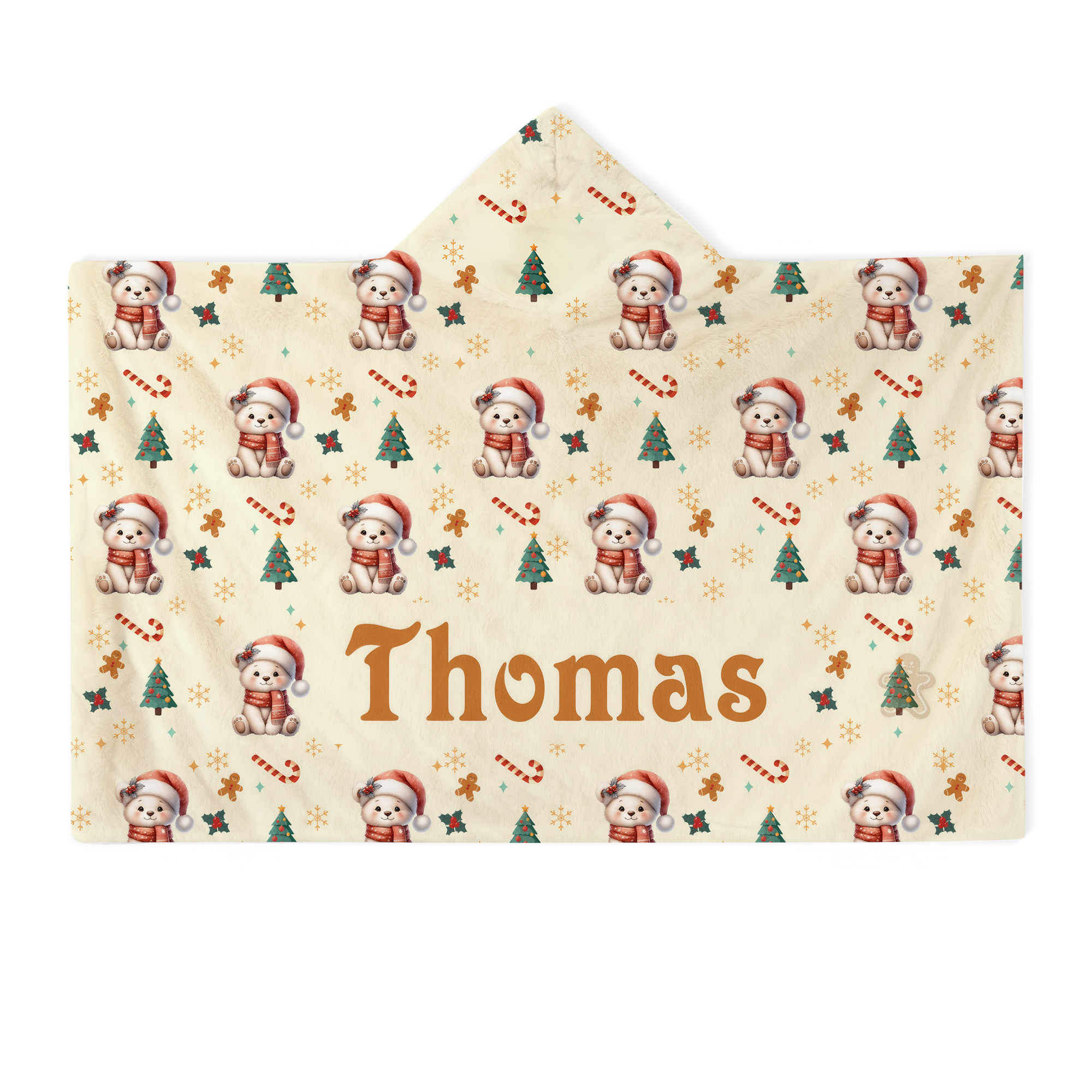 Personalized Christmas Cartoon Animals Soft Hooded Blanket with Name, Multicolor Christmas Hooded Blanket, Christmas Gift for Kids