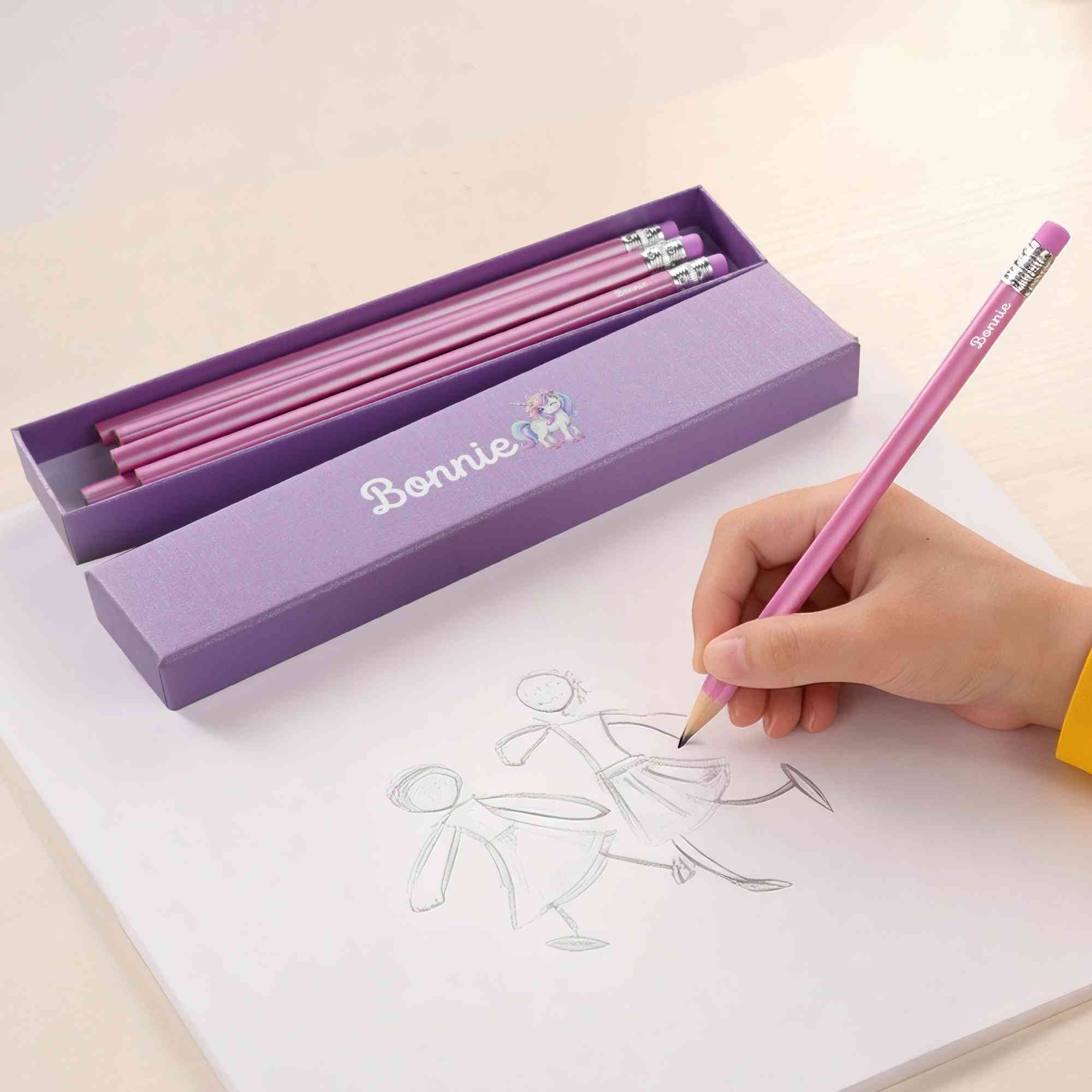 Customization - Each pencil case and pencil is customizable with your child’s name, elegantly printed to blend seamlessly with the delightful designs. This personal touch ensures they feel special and unique, helping them take pride in their belongings.